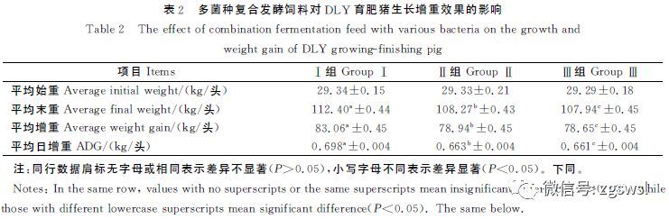 2.1 多菌種復(fù)合發(fā)酵飼料對DLY育肥豬生長增重效果的影響