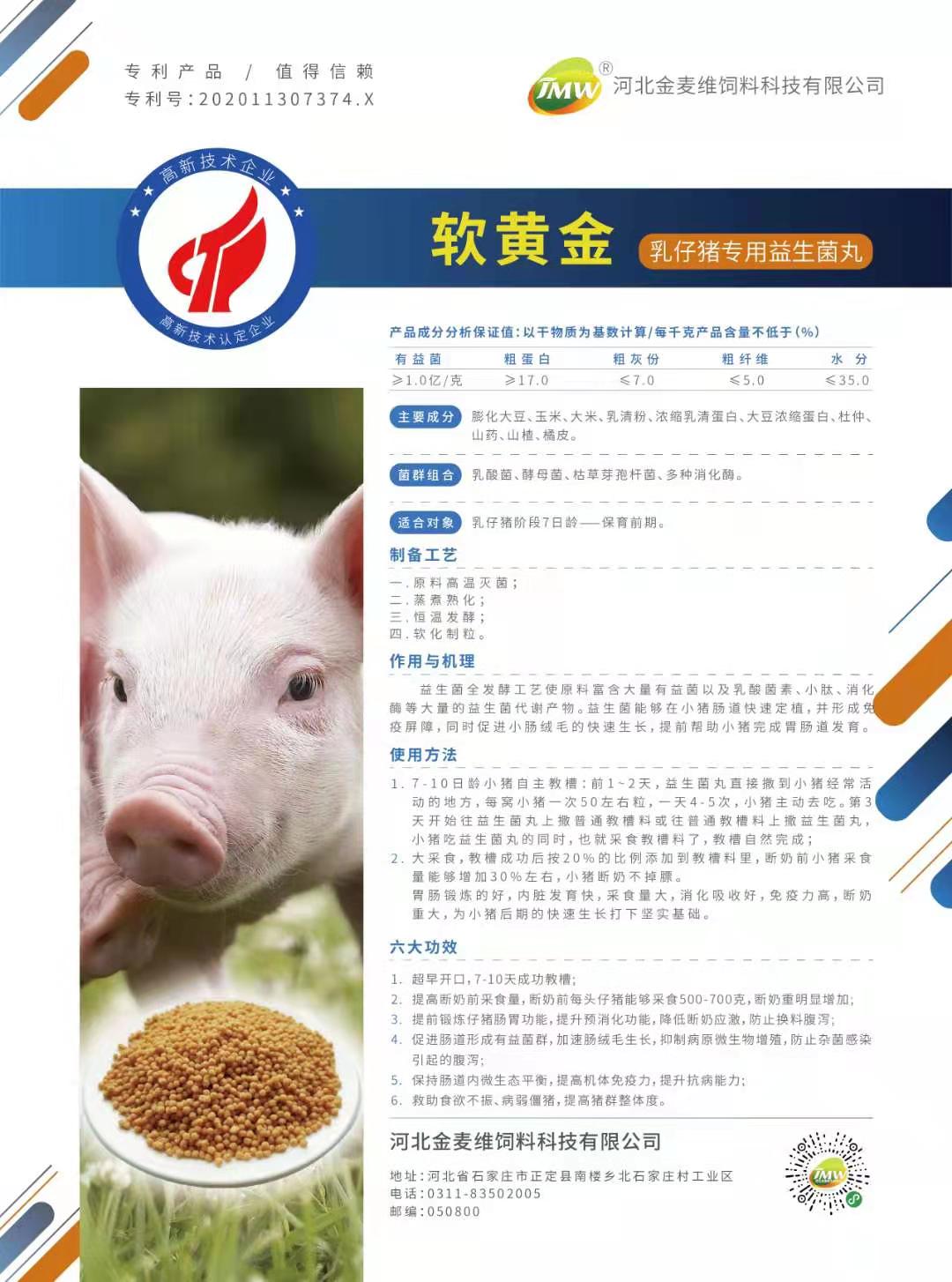 乳仔豬專用益生菌丸主要成分 膨化大豆、玉米、大米、乳清粉、 濃縮乳清蛋白、大豆?jié)饪s蛋白、杜仲、山藥、山楂、橘皮。菌群組合 乳酸菌、酵母菌、枯草芽孢桿菌、多種消化酶。